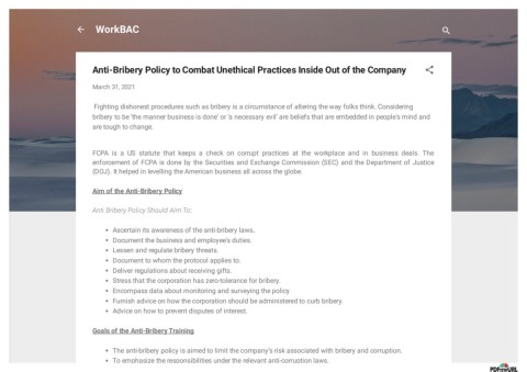 Anti-Bribery Policy to Combat Unethical Practices Inside Out of the Company