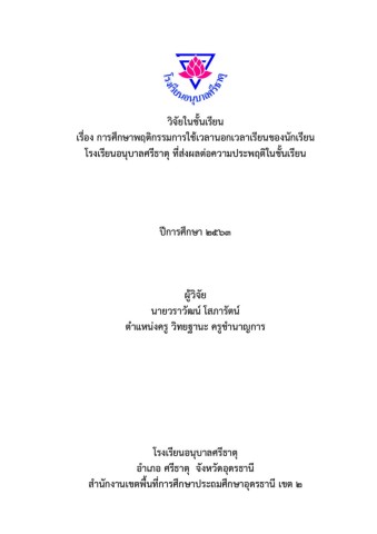 วิจัยในชั้นเรียน เรื่อง การศึกษาพฤติกรรมการใช้เวลานอกเวลาเรียนของนักเรียน โรงเรียนอนุบาลศรีธาตุ ที่ส่งผลต่อความประพฤติในชั้นเรียน thank7777
