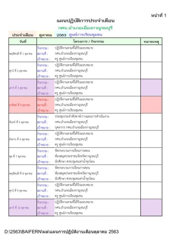 แผนการปฏิบัติงานเดือนตุลาคม 2563 anongnard.fern.2531
