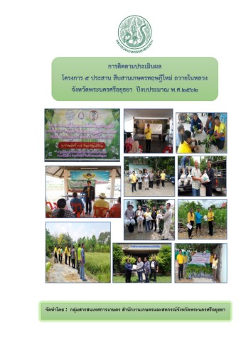 รายงานติดตาม ประเมินผลโครงการเกษตรทฤษฎีใหม่ 5 ประสาน สืบสานเกษตรทฤษฎีใหม่ ถวายในหลวง จังหวัดพระนครศรีอยุธยา ปีงบประมาณ พ.ศ.2562 สำนักงานเกษตรและสหกรณ์จังหวัดพระนครศรีอยุธยา