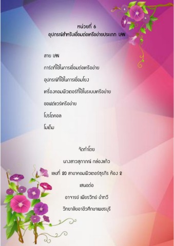หน่วยที่6-อุปกรณ์สำหรับเชื่อมต่อเครือข่ายประเภทLAN 922539fern